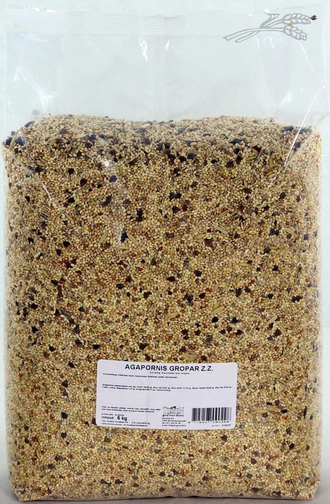 Agapornis – Grote Parkiet zonder Zonnepitten is een zaadmengeling voor agapornide en andere grote parkieten. De mengeling is een volledige voeding en bevat geen zonnepitten, waardoor het een lager vetgehalte heeft.