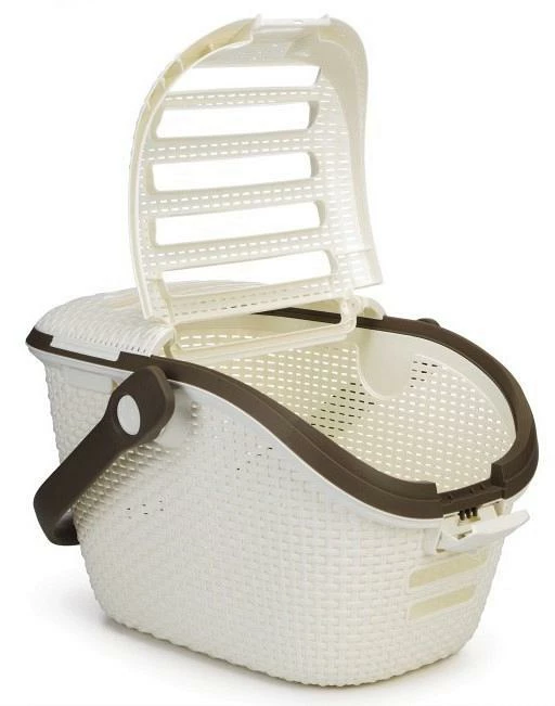 De Curver reismand is een mooie mand gemaakt van stevig kunststof. Het heeft een dichte bodem en de bovenkant is voorzien van openingen voor licht en lucht.