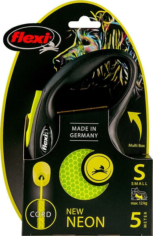 Met deze Flexi kan de lijn op elke gewenste afstand vast gezet worden. Uiteraard kan er daardoor ook bij een gevaarlijke situatie direct ingegrepen worden door de rem in te drukken zodat de hond niet verder kan lopen. Het koord is geheel geel reflecterend, alsmede de twee grote vlakken bij het handvat zodat jij en jouw hond in het donker goed zichtbaar zijn en daardoor veilig aan het verkeer kunnen deelnemen. Deze Flexi is geschikt voor honden tot maximaal 12 kg aan lichaamsgewicht.