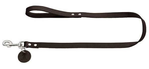 De Hunter rundleder Hondenlijn is van zachte koeienhuid en heeft een bijzonder hoge vetgehalte en natuurlijke bruining. De lijn is bestand tegen hoge trekkrachten en is daarom bijzonder geschikt voor hondensporten. Het leer is niet alleen extreem robuust, maar de hondenriem ligt ook heerlijk soepel in de hand. De reliëf-sleutelhanger toont een gestileerd Indiaas symbool dat doet denken aan de dierlijke oorsprong van het leer.