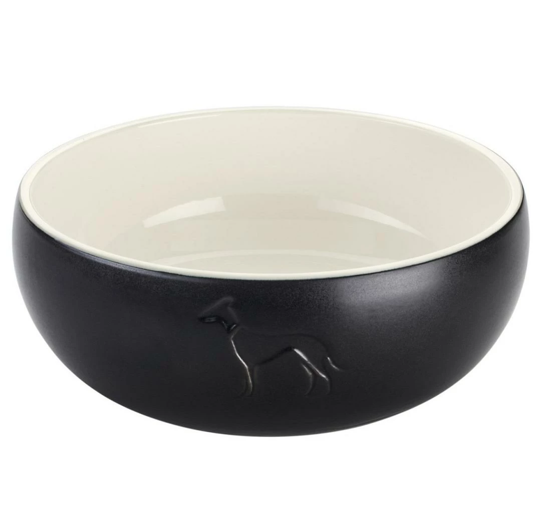 Hunter Voerbak Lund is een moderne, keramische voerbak met een gebosseleerd hondensilhouet op de voorkant. Dankzij de omringende siliconen rand aan de onderkant en het relatief hoge gewicht is de voerbak bijzonder veilig en wordt hij ook gemakkelijk geaccepteerd door gevoelige honden.