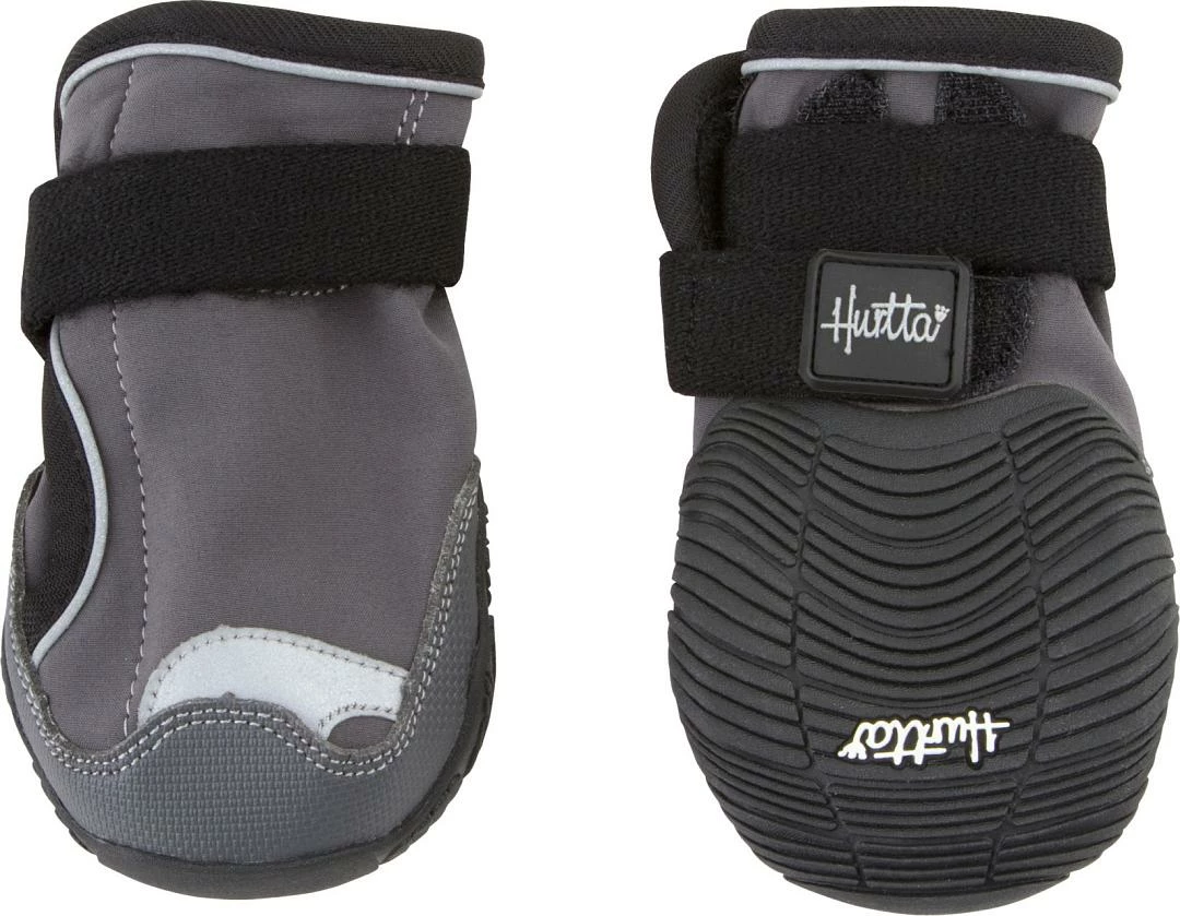Deze schoentjes hebben een stevige antislip rubberen zool en zijn gemaakt van waterdicht Houndtex-materiaal. Door de soepele stof is het aan en uit trekken eenvoudig. Het klittenband zorgt ervoor dat de schoentjes op z’n plek blijven tijdens het lopen. Omdat de maten van de voor- en achterpoten bij honden kunnen verschillen, worden de Hurtta Outback Boots per 2 verkocht. Voor extra zichtbaarheid in het donker zijn er reflectoren aangebracht op de schoenen.