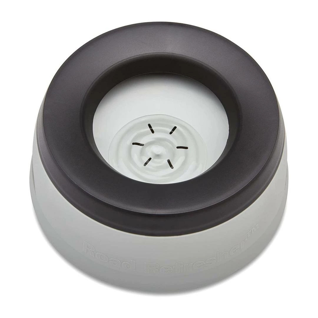 De Road Refresher is dé ideale drinkbak voor in huis, de bench, caravan, auto of voor op de boot! Deze drinkbak heeft een dubbele bodem (vlotter) met openingen, die ervoor zorgen dat er maar een klein laagje water op ligt. De hond drinkt hierdoor veel rustiger en minder gulzig. Een extra rand in combinatie met de vlotter voorkomt onnodig geknoei met water tijdens het drinken, bij een onverwachtse beweging van buitenaf of voorkomt het dat de oren van de hond in het water hangen.