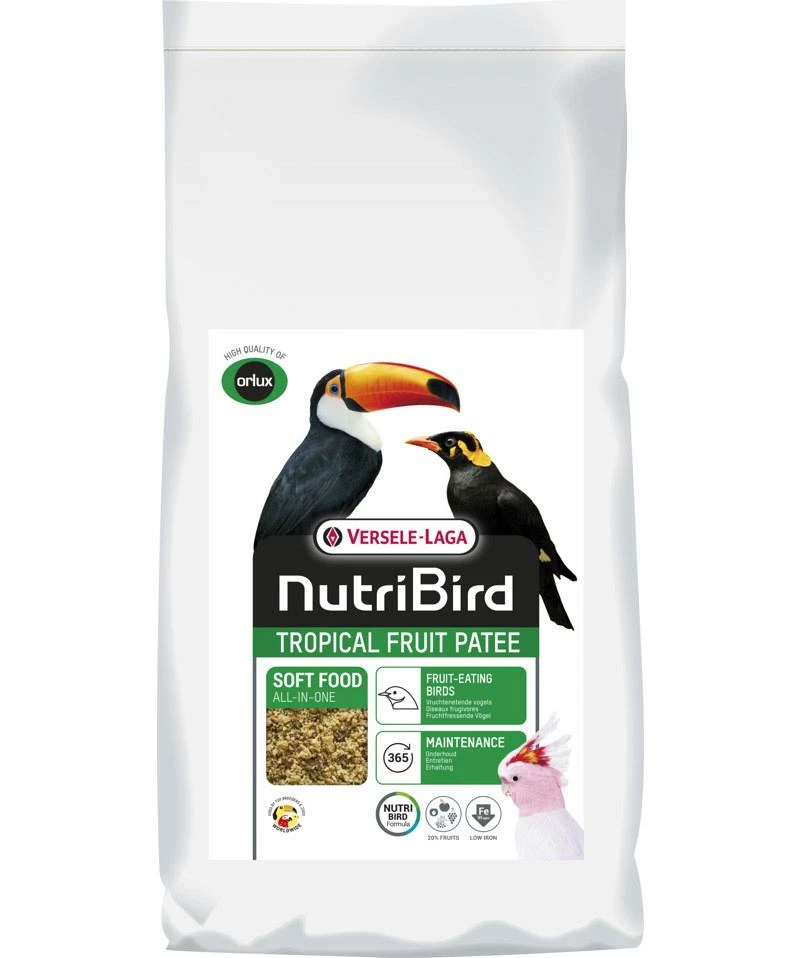 Versele-Laga NutriBird Tropical Fruit Patee is een volledig voeder voor alle vruchtenetende vogels. Het is een uitgebalanceerde vruchtenpatée met alle voedingsstoffen die jouw vogels nodig hebben.